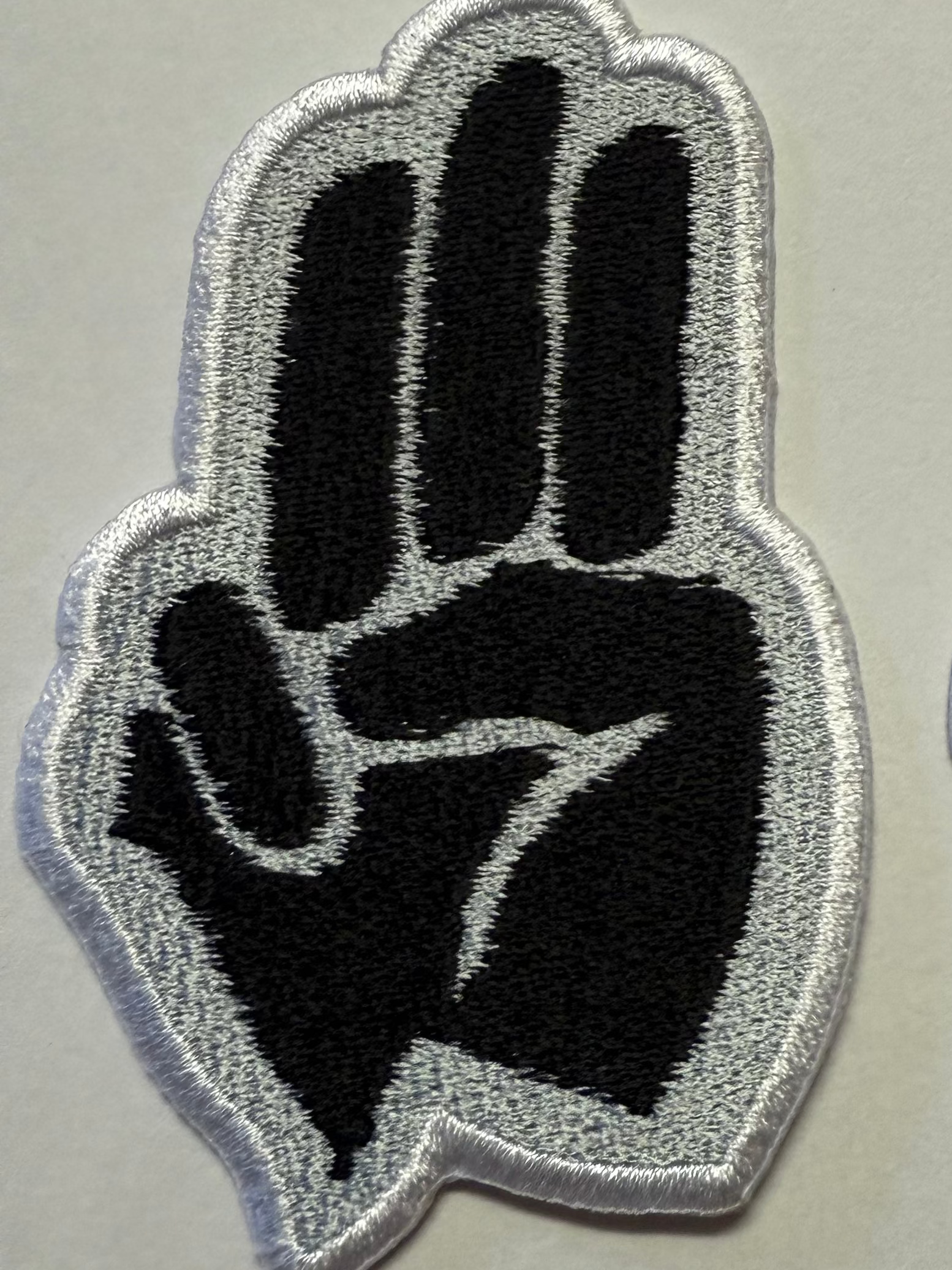 Three Fingers 3 inch embroidered patch design = Three wheels, unity and safety. Represents the bond of three-wheel riders everywhere.